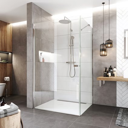 Mereo, Pivotový sprchový kout, Novea, čtverec, chrom ALU, sklo Čiré, dveře L/P a pevný díl, CK12923Z