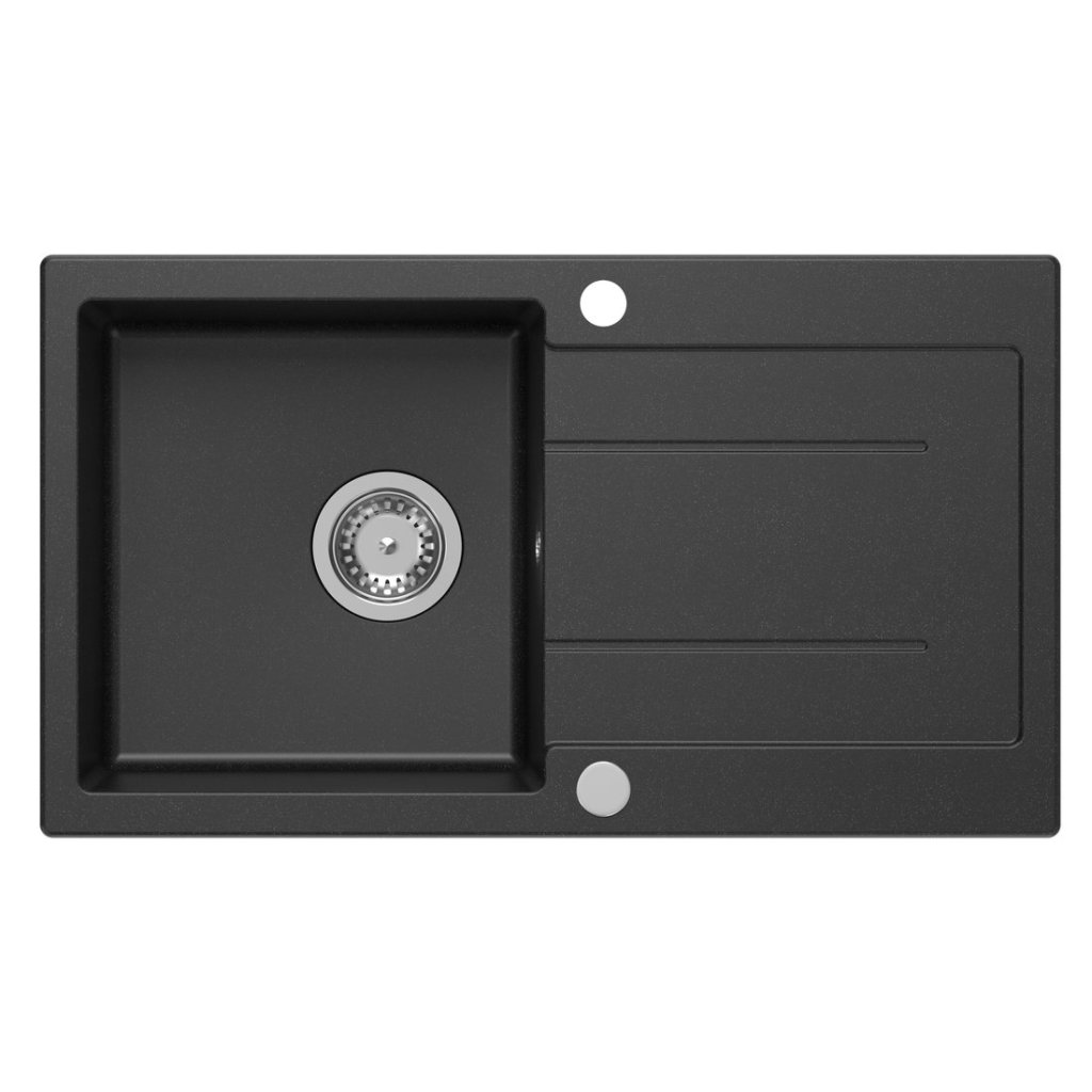, Granitový vestavný dřez s okapem, 77x44cm, černá, 30874504