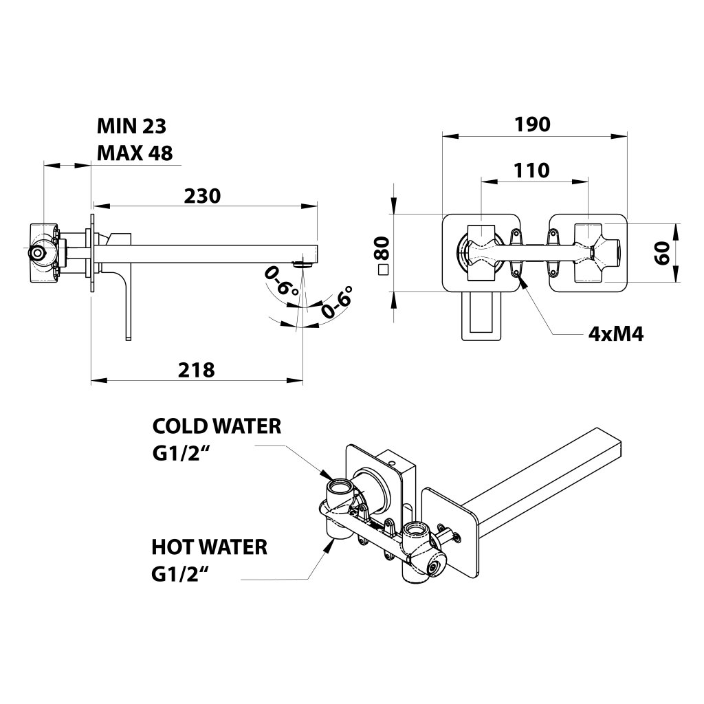 Sapho, FORATA podomítková umyvadlová baterie, délka hubice 23cm, černá mat