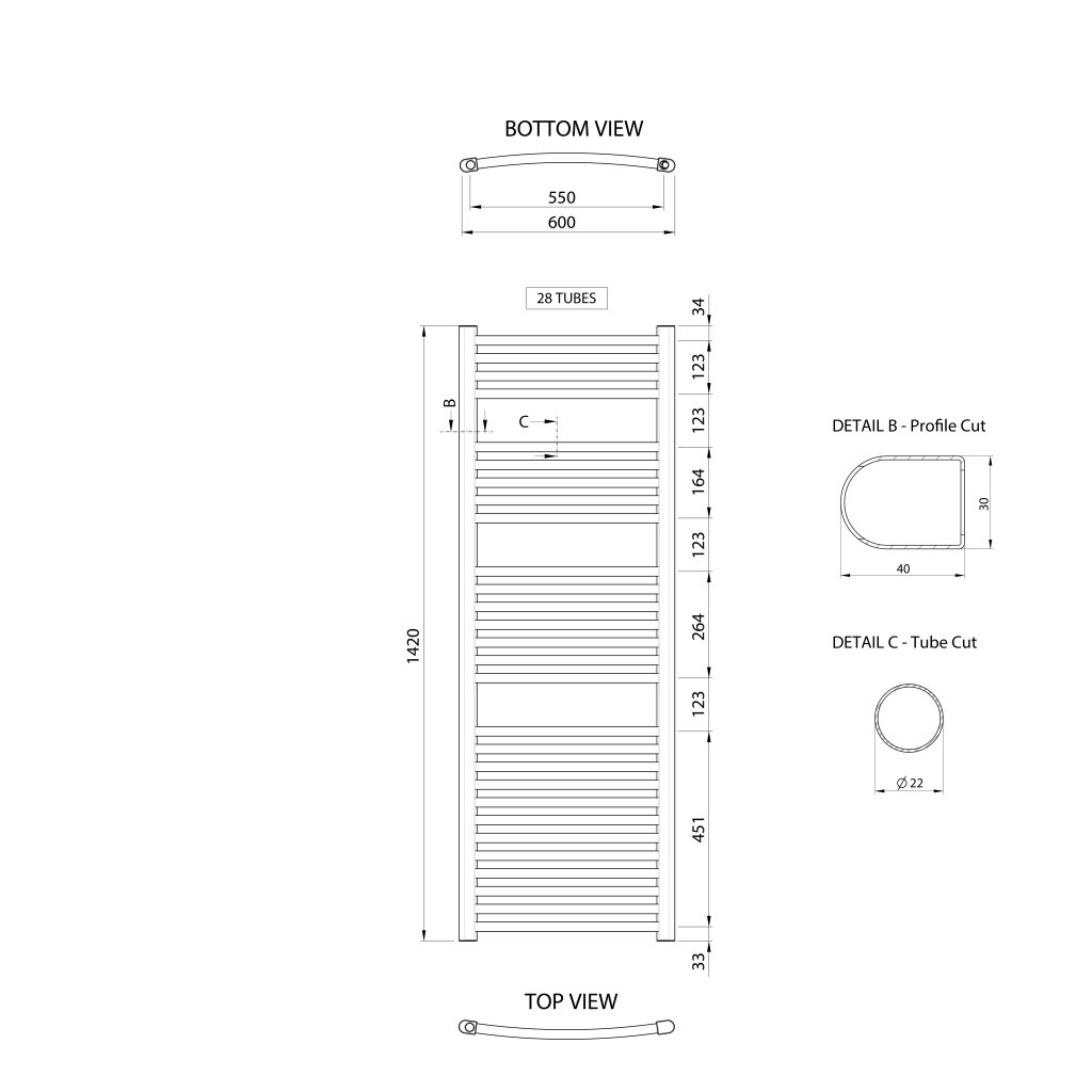 Aqualine, ALYA topné těleso oblé 600x1420mm, chrom, LLC204