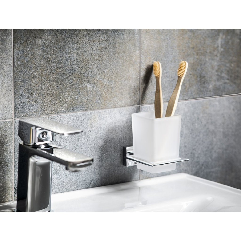 Série APOLLO zaujme moderním vzhledem i zajímavou cenou. Sklenička, mýdelník, nádobka dávkovače mýdla a WC štětky jsou z mléčného skla.