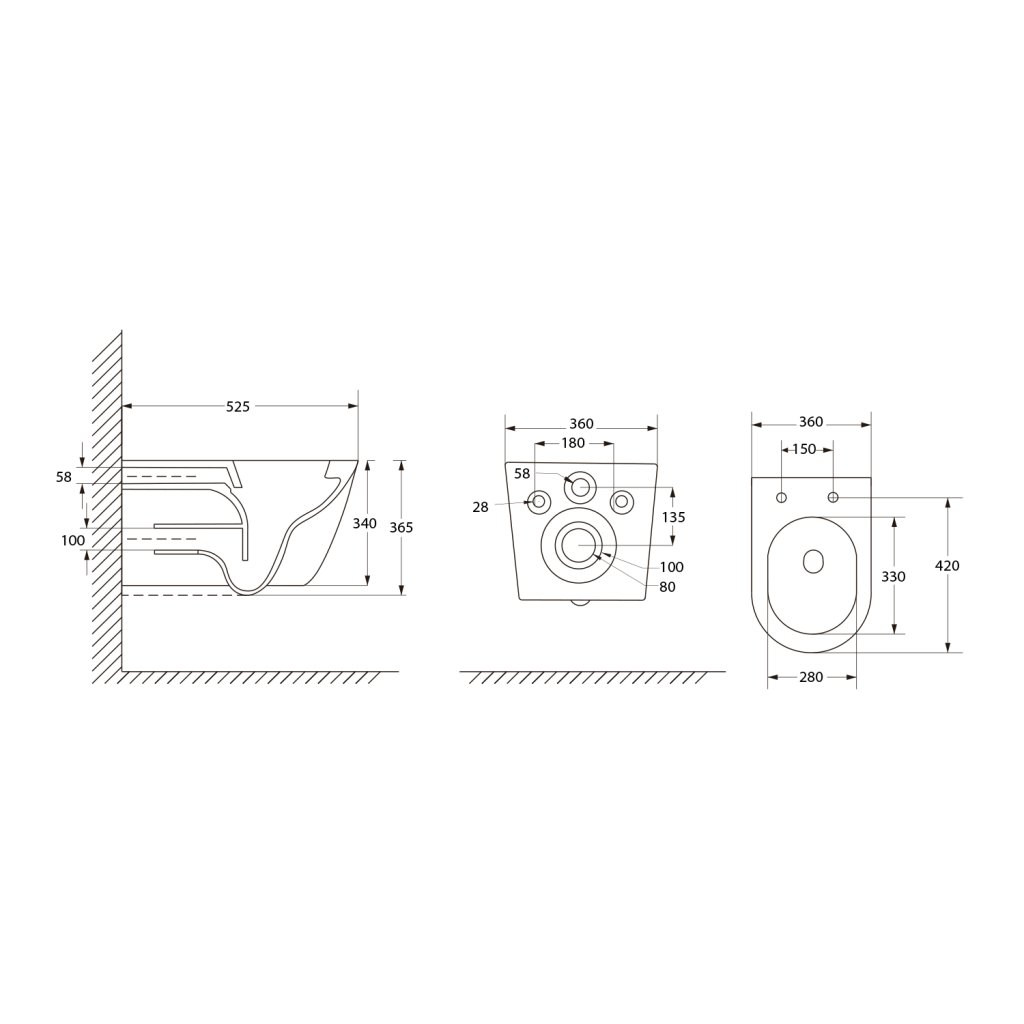 Aqualine, DENICA závěsná WC mísa, Vortex Rimless, 36x52cm, bílá, PS8512