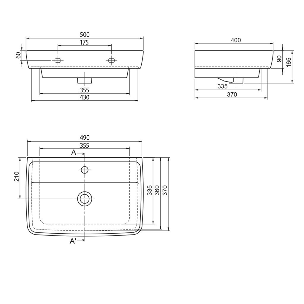 Aqualine, DURU keramické umyvadlo 50x40 cm, bílá, TU0350