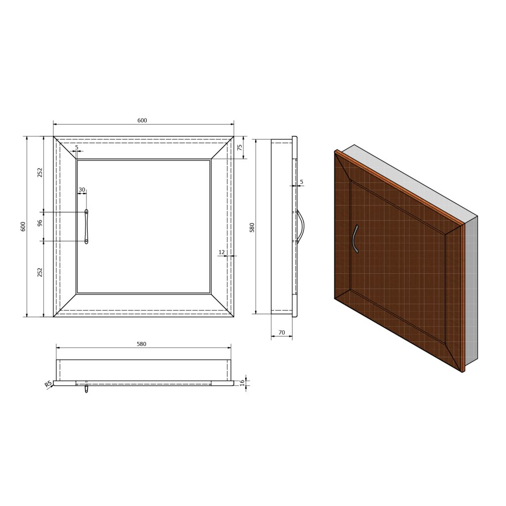 Aqualine, Dvířka do stupaček 60x60cm, dub Platin, DS125