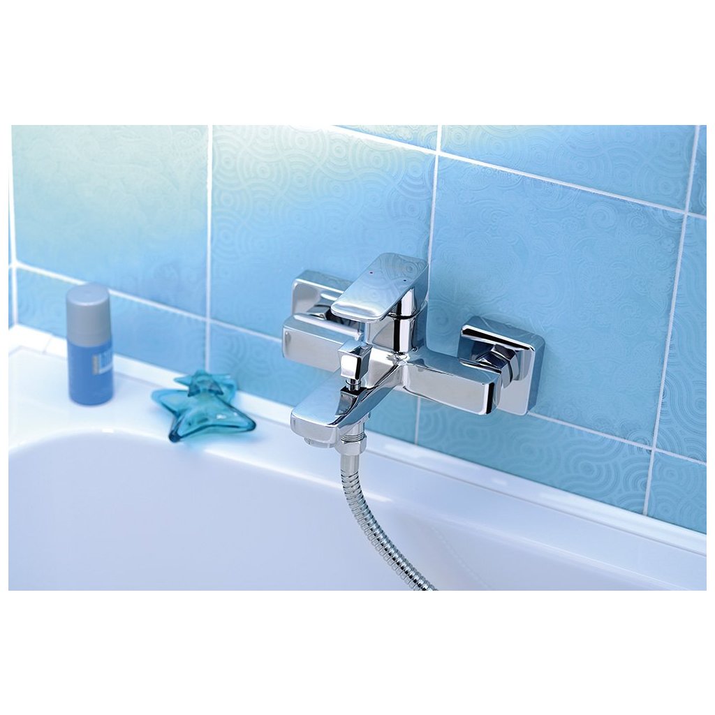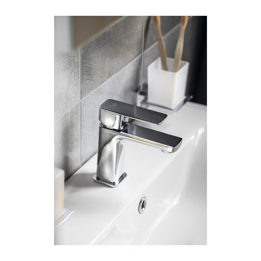Série pákových baterií FACTOR je charakteristická kombinací hranatých tvarů a zaoblených rohů.