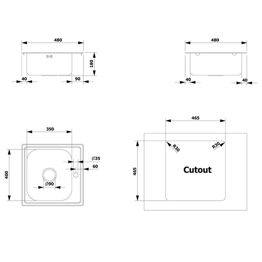 Aqualine, Nerezový dřez 48x18x48cm, AQ4848B