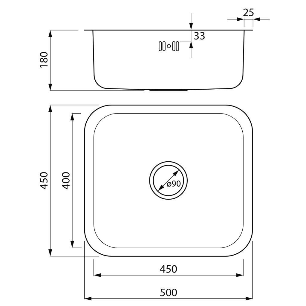 Aqualine, Nerezový vestavný dřez 50x18x45cm, AQ5045