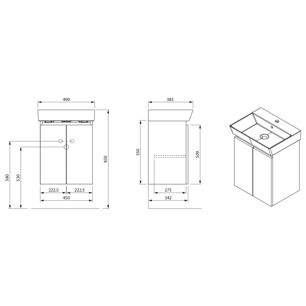 Aqualine, PANEDA umyvadlová skříňka 45x55x34,2cm, bílá, PN245