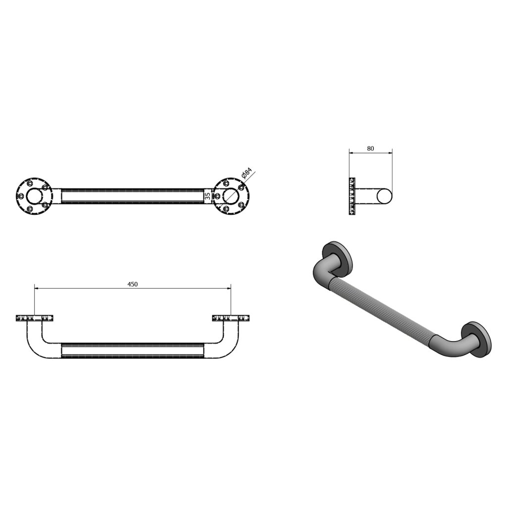Odolné plastové madlo poskytuje bezpečnou oporu díky drážkám na rukojeti, které poskytují bezpečné uchopení i mokrýma rukama.