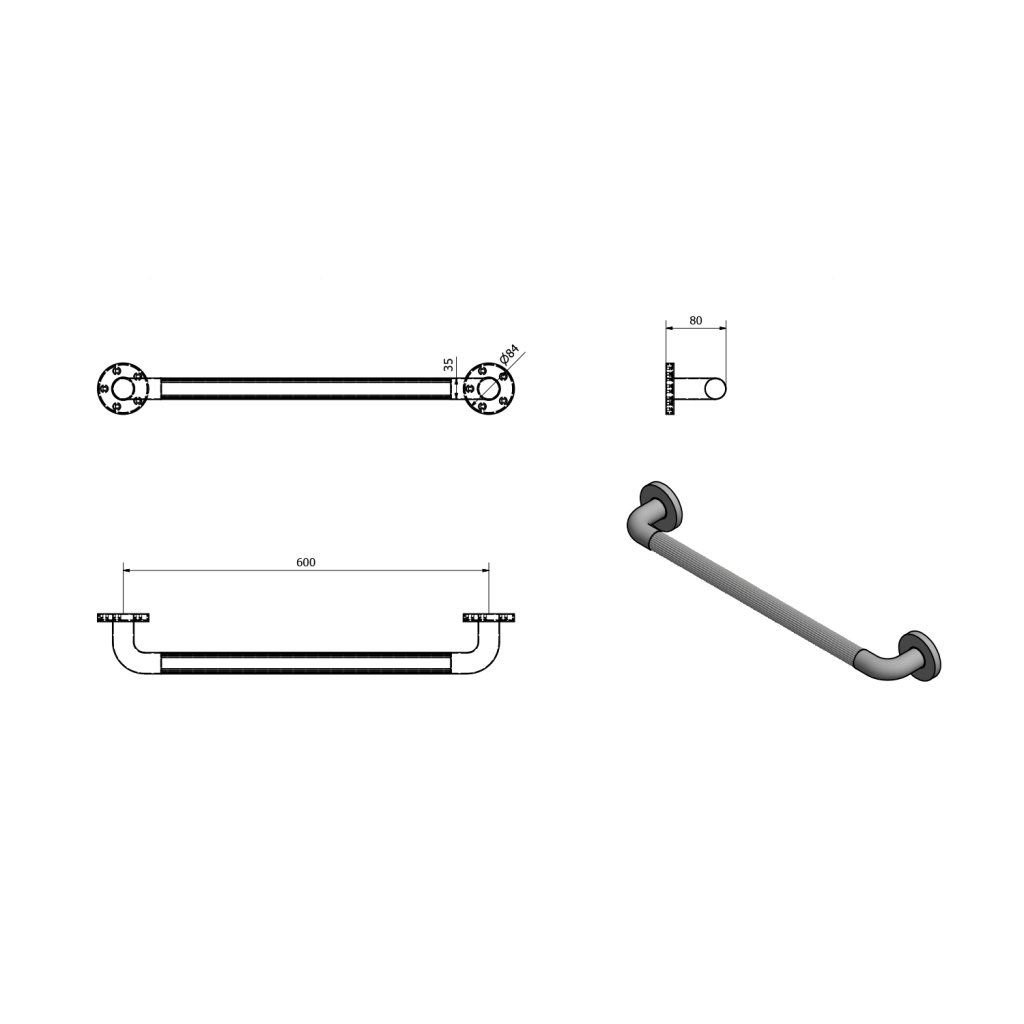 Aqualine, Pevnostní madlo plastové, 600mm, MD360