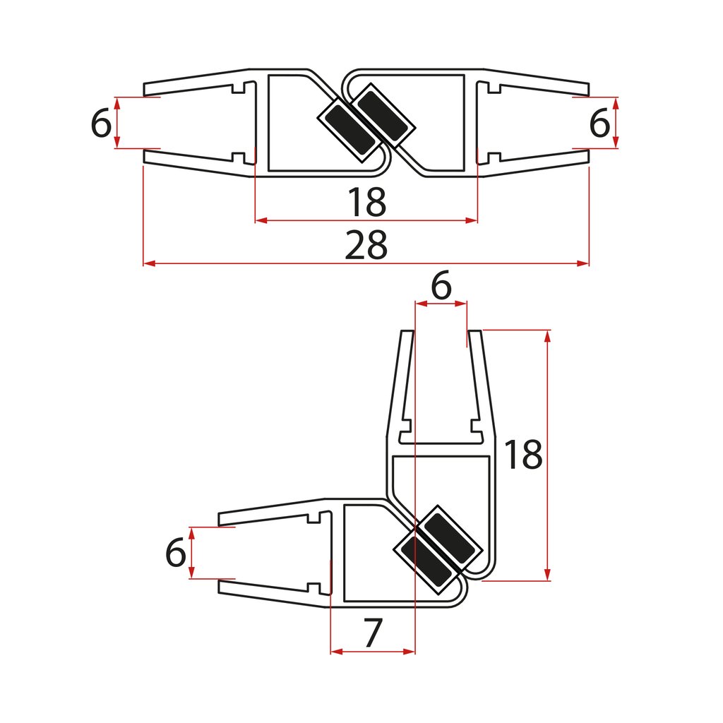 Aqualine, Set magnetických těsnění 45° pro sklo 6/6mm, 1960mm, NDPT-09
