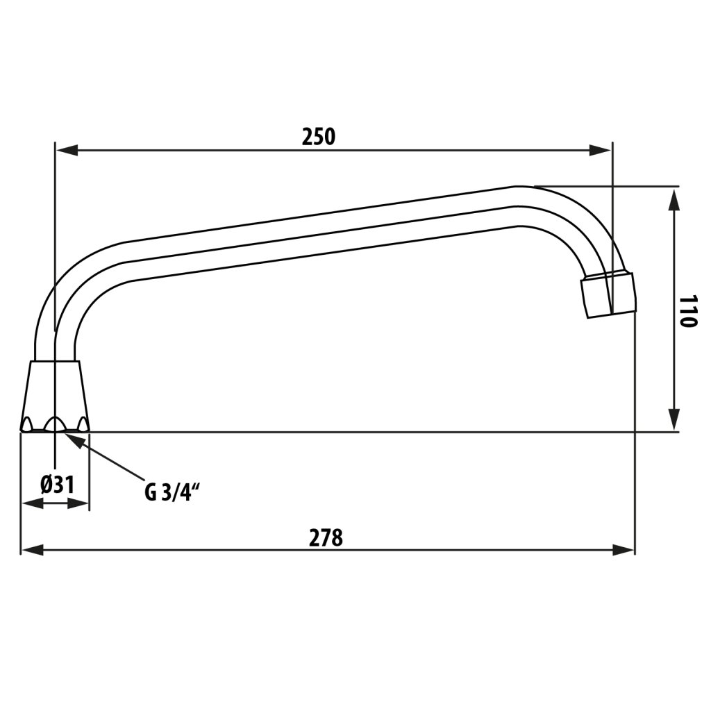Aqualine, Univerzální výtokové ramínko k baterii, 25cm, typ-U, chrom, 15U250