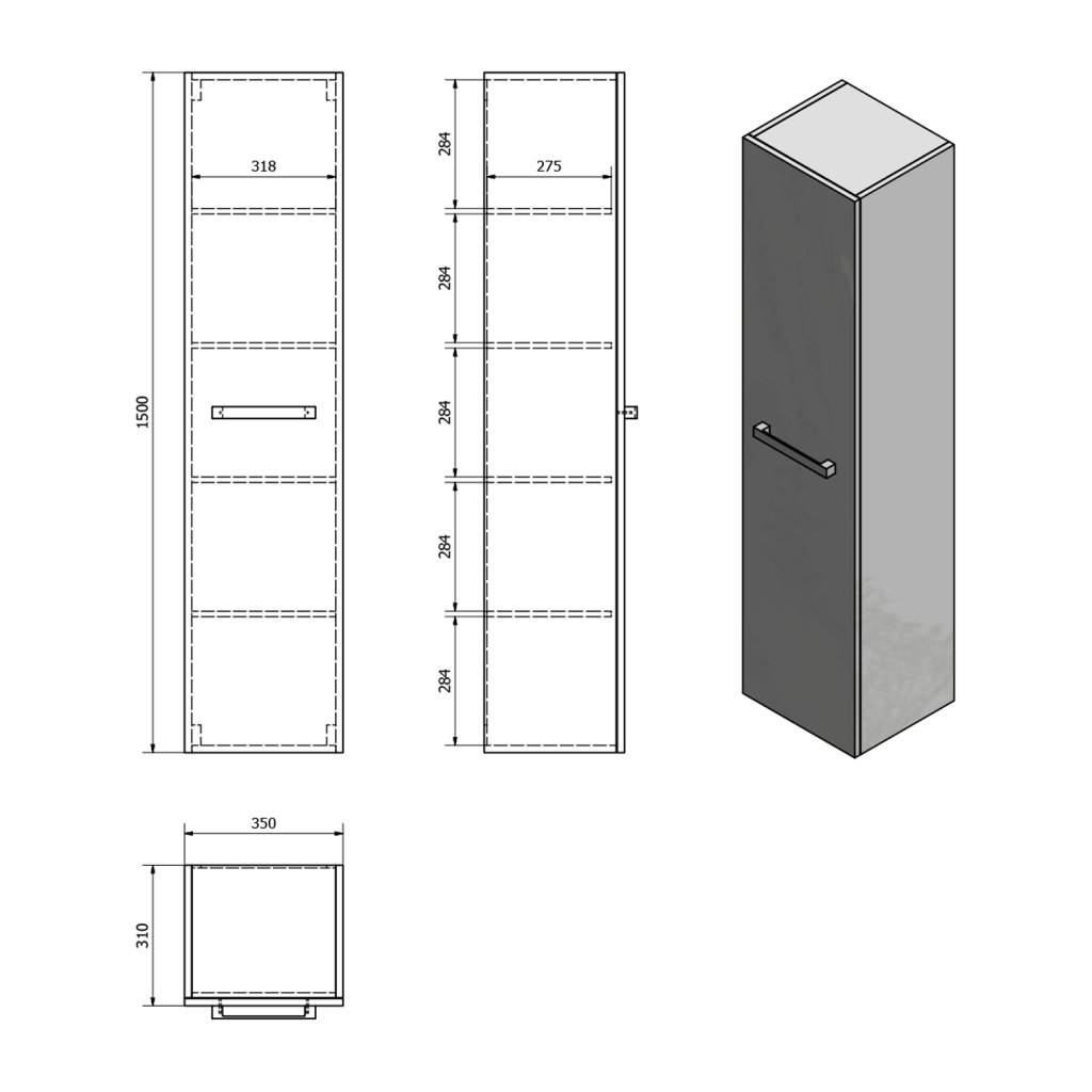 Aqualine, VEGA Skříňka vysoká 35x150x31cm, levá/pravá, bílá, VG150