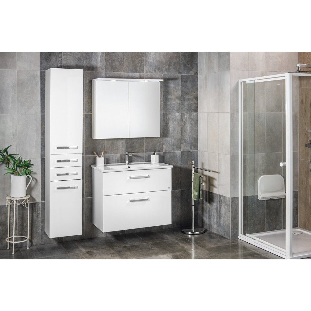 Série VEGA jsou skříňky v provedení lesklé bílé a dub platin s praktickými velkými zásuvkami. Umyvadlové skříňky lze doplnit o VEGA desku pod umyvadlo v dekoru dub platin. Koupelnový nábytek VEGA je moderní a vzhledově čistý nábytek za příznivou cenu.