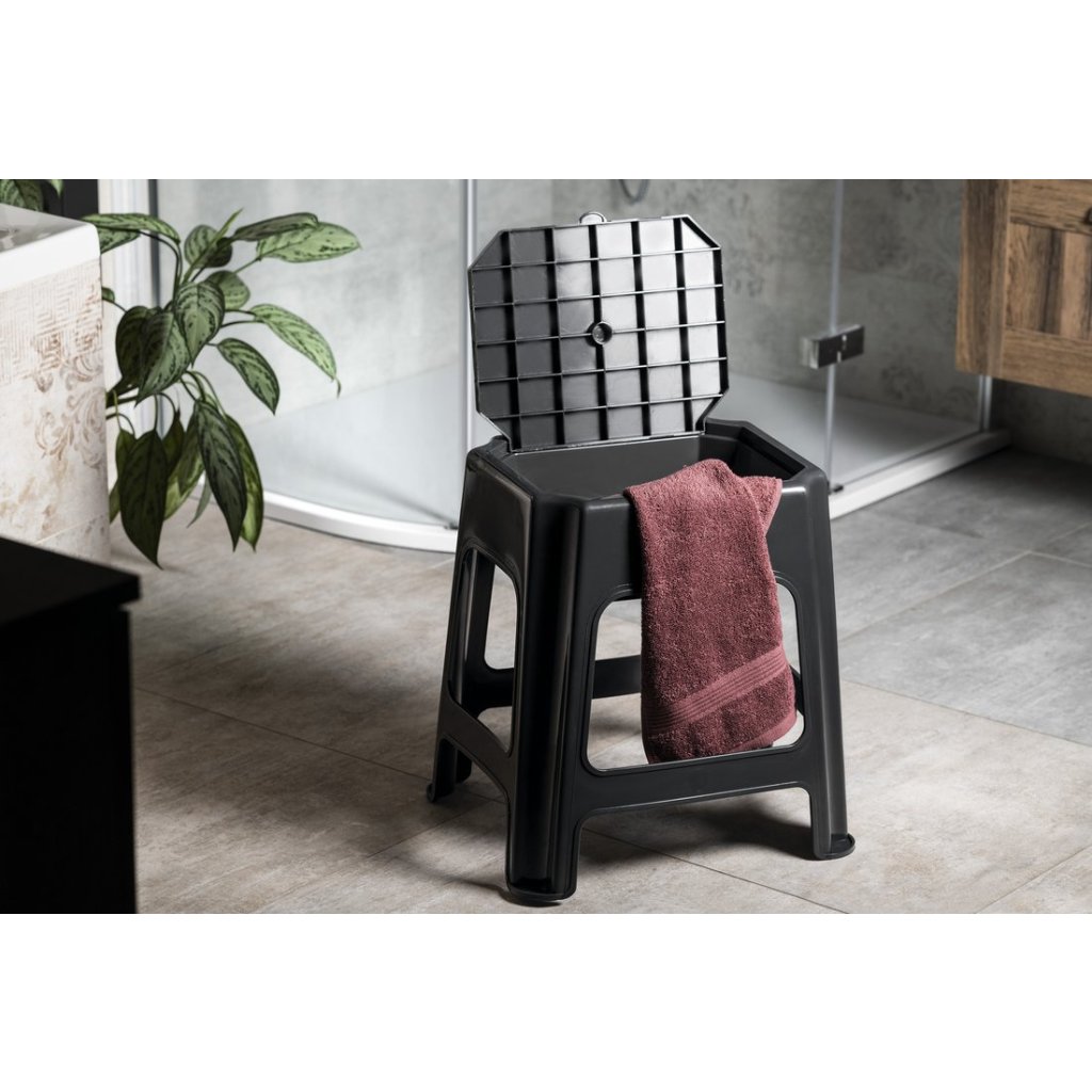 Aqualine, Židle koupelnová s úložným prostorem, černá, 90902B