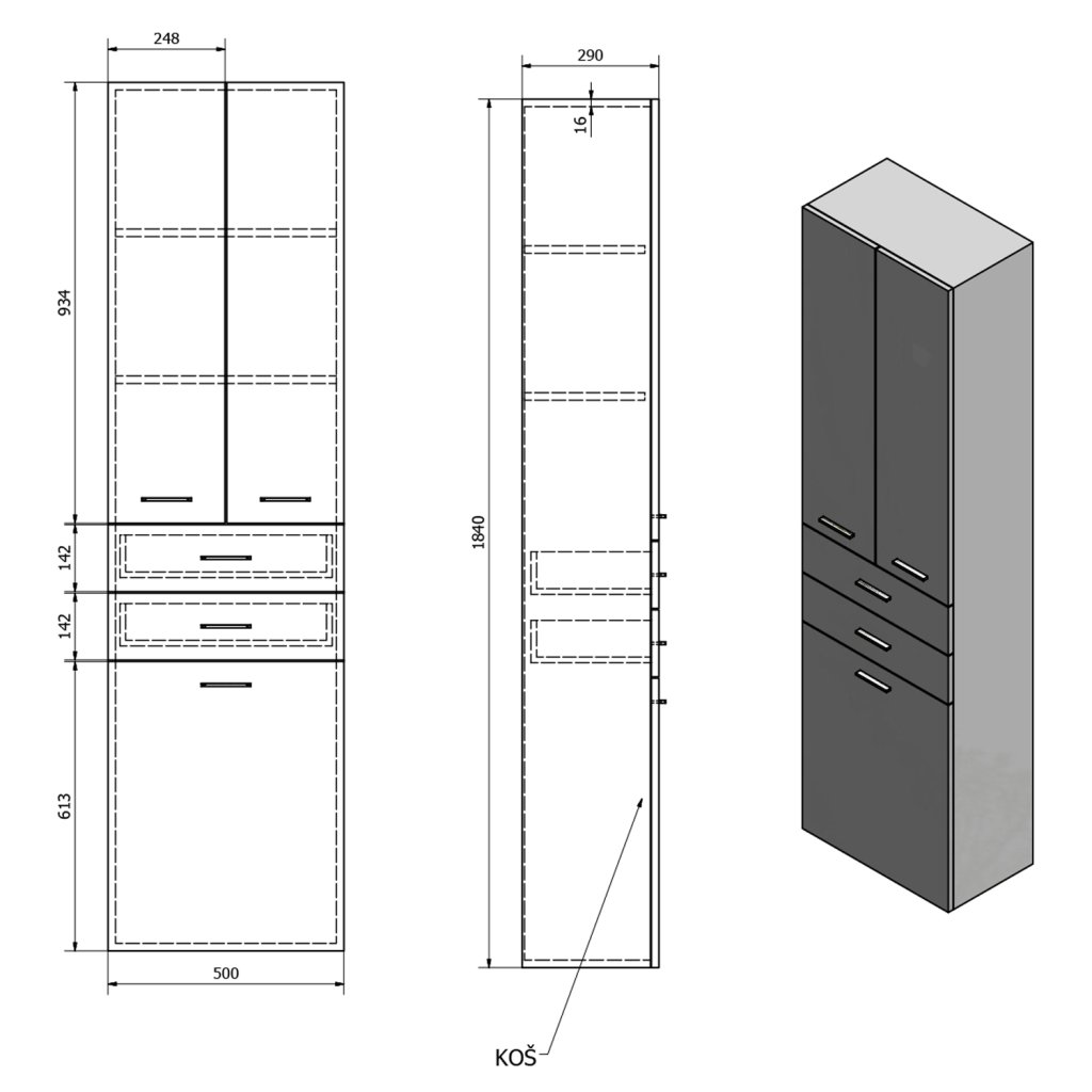 Aqualine, ZOJA/KERAMIA FRESH skříňka vysoká s košem 50x184x29cm, dub platin, 51295
