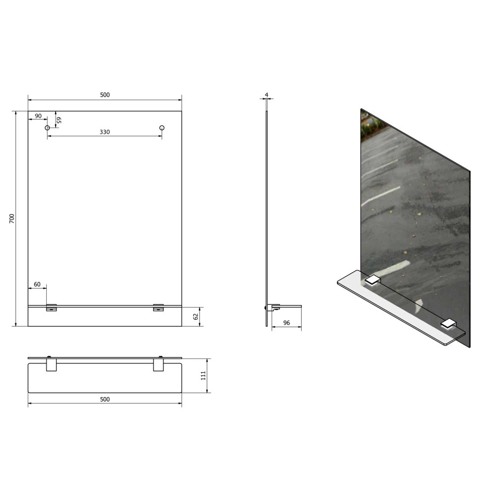 Aqualine, Zrcadlo 50x70cm, včetně závěsů a otvorů pro polici, 22429