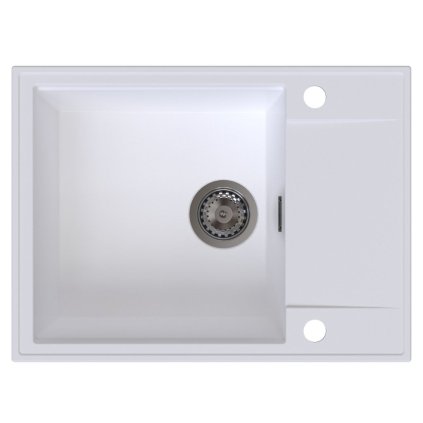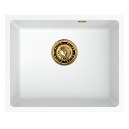 Sink Quality Sink55, kuchyňský granitový dřez 620x460x215 mm + zlatý sifon, bílá, SKQ-SINK.W.1KKO.XG