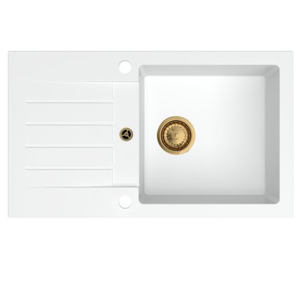 Sink Quality Natalie, kuchyňský granitový dřez 770x450x170 mm + zlatý sifon, bílá, SKQ-NAT.W.1KDO.XG