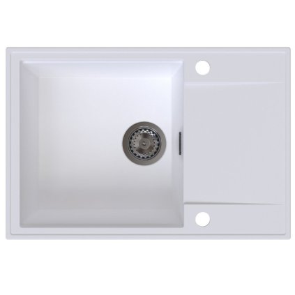 Sink Quality Sink55, kuchyňský granitový dřez 680x460x215 mm + zlatý sifon, bílá, SKQ-SINK.W.1KDO.XG