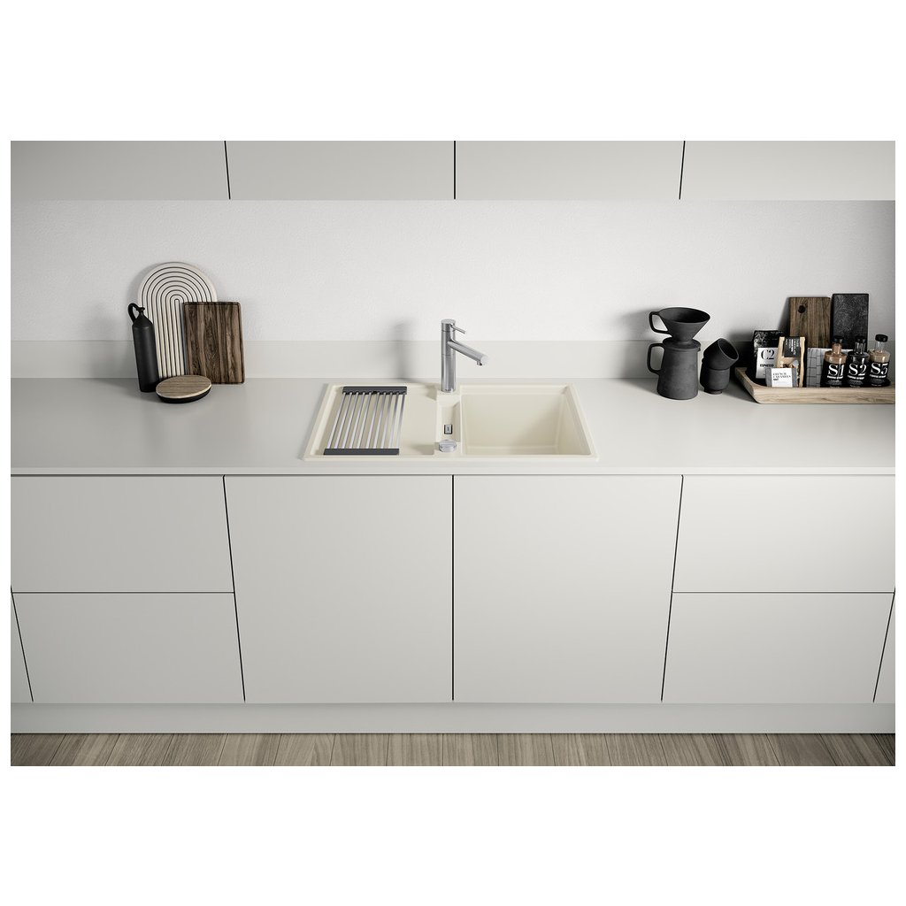 Kompozitní materiál, který je tvořen až z 80% ze žuly (granitu). Dřezy z tohoto materiálu zaujmou svým kamenným charakterem příjemným na dotek a nepřekonanými vlastnostmi. Jsou tvrdé, pevné a jemně pórovité. Materiál představuje dokonalou rovnováhu mezi jednoduchou péčí a odolností, hladkým povrchem a barvami, které lze ideálně kombinovat s prostředím kuchyně.