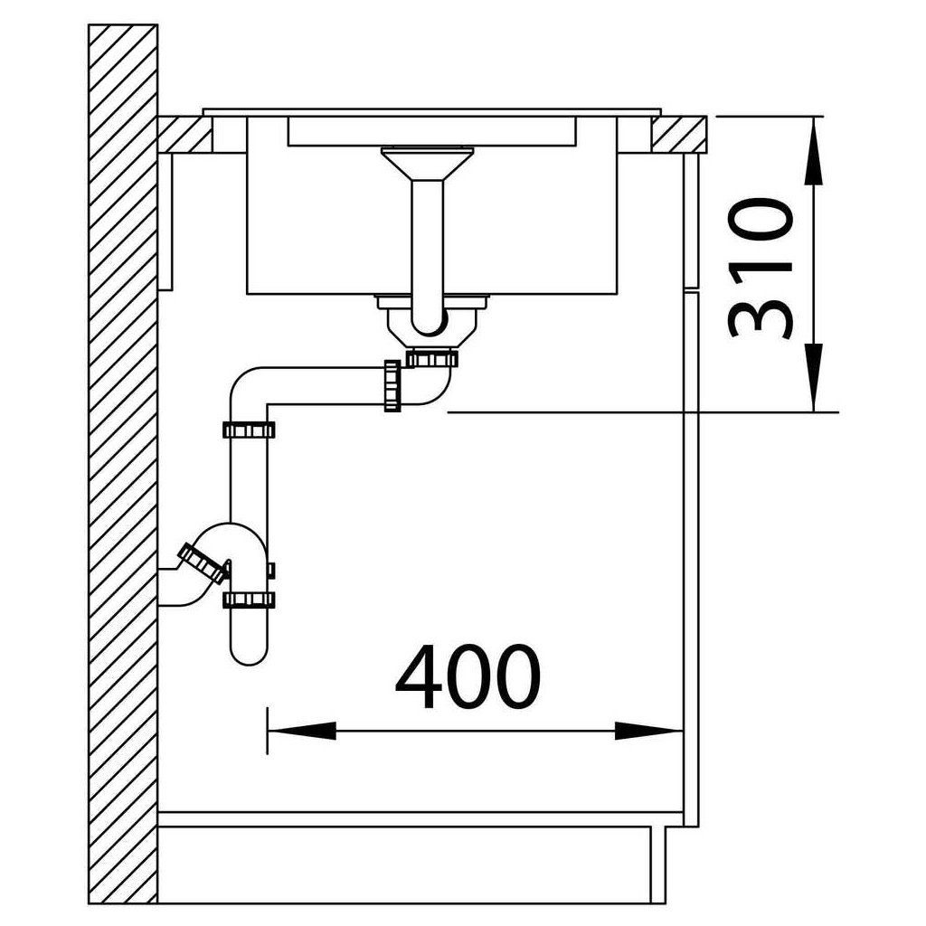 - Dřez je vhodný do skříňky o minimální šířce 45 cm