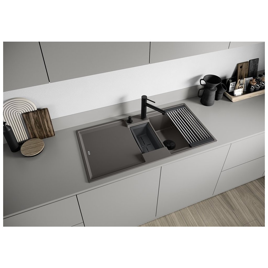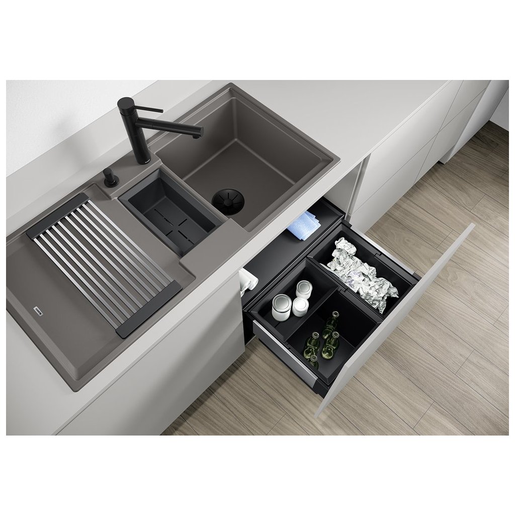 - praktická multifunkční miska ADIRA, která plní funkci druhé vaničky, odkapávače a je kompatibilní s košovými systémy BLANCO SELECT II a FLEXON II