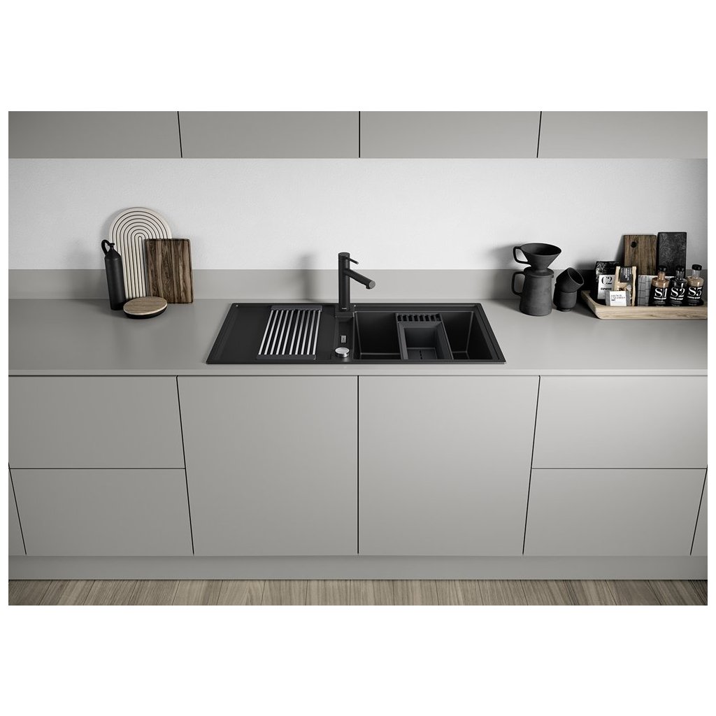 Kompozitní materiál, který je tvořen až z 80% ze žuly (granitu). Dřezy z tohoto materiálu zaujmou svým kamenným charakterem příjemným na dotek a nepřekonanými vlastnostmi. Jsou tvrdé, pevné a jemně pórovité. Materiál představuje dokonalou rovnováhu mezi jednoduchou péčí a odolností, hladkým povrchem a barvami, které lze ideálně kombinovat s prostředím kuchyně.
