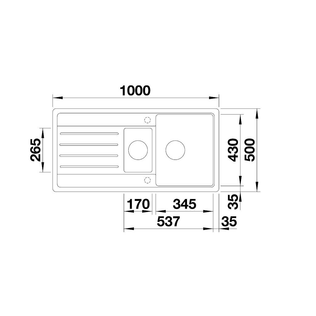- Dřez z výroby bez otvorů, nutno vyhotovit otvor pro baterii případně dávkovač a excenter (není součástí produktu)
