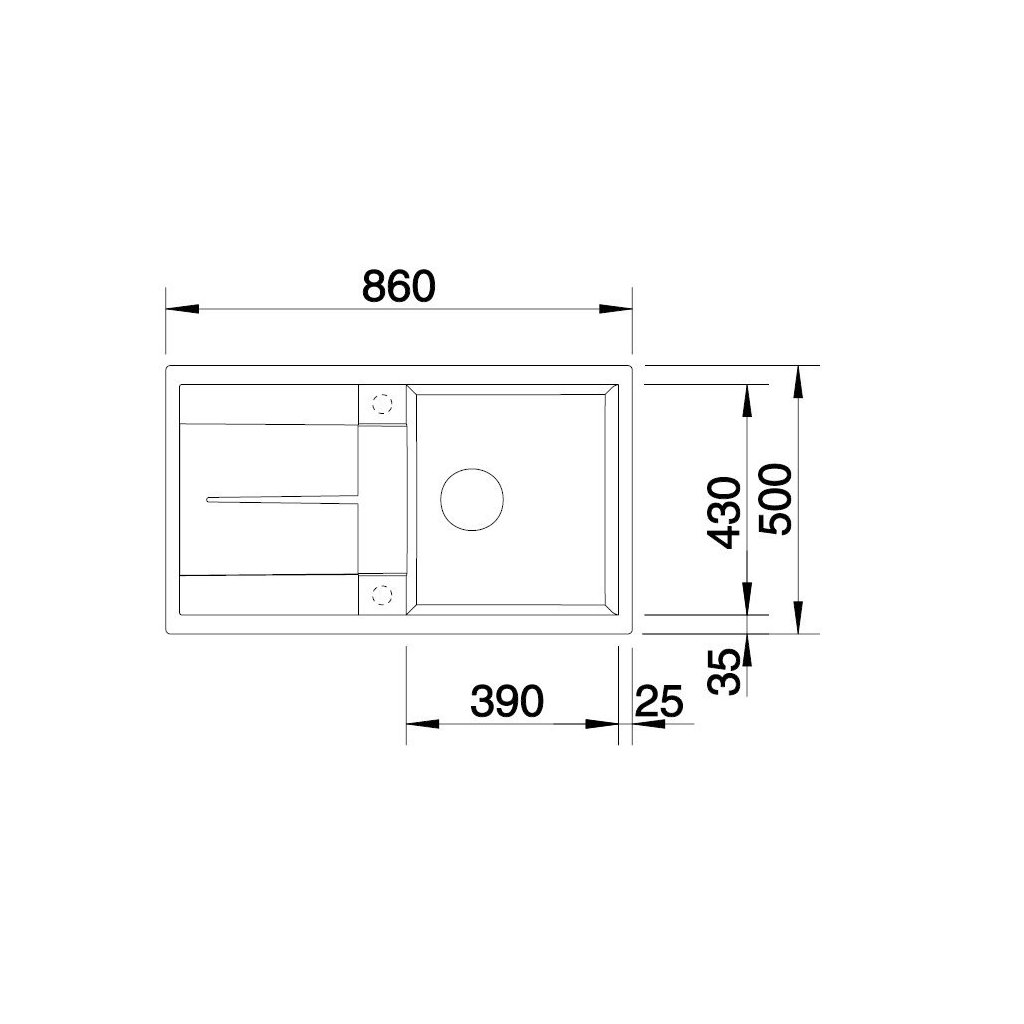 - Rozměr dřezu: 860 x 500 mm