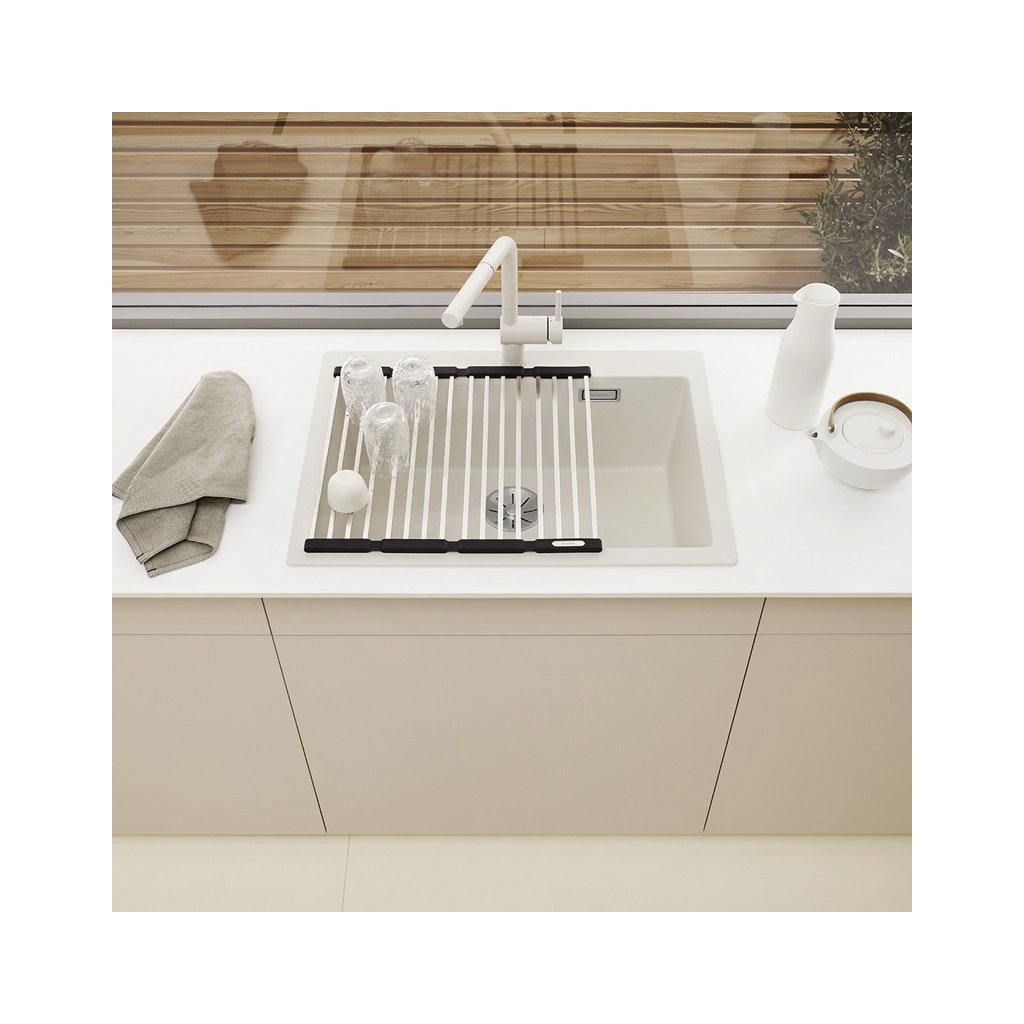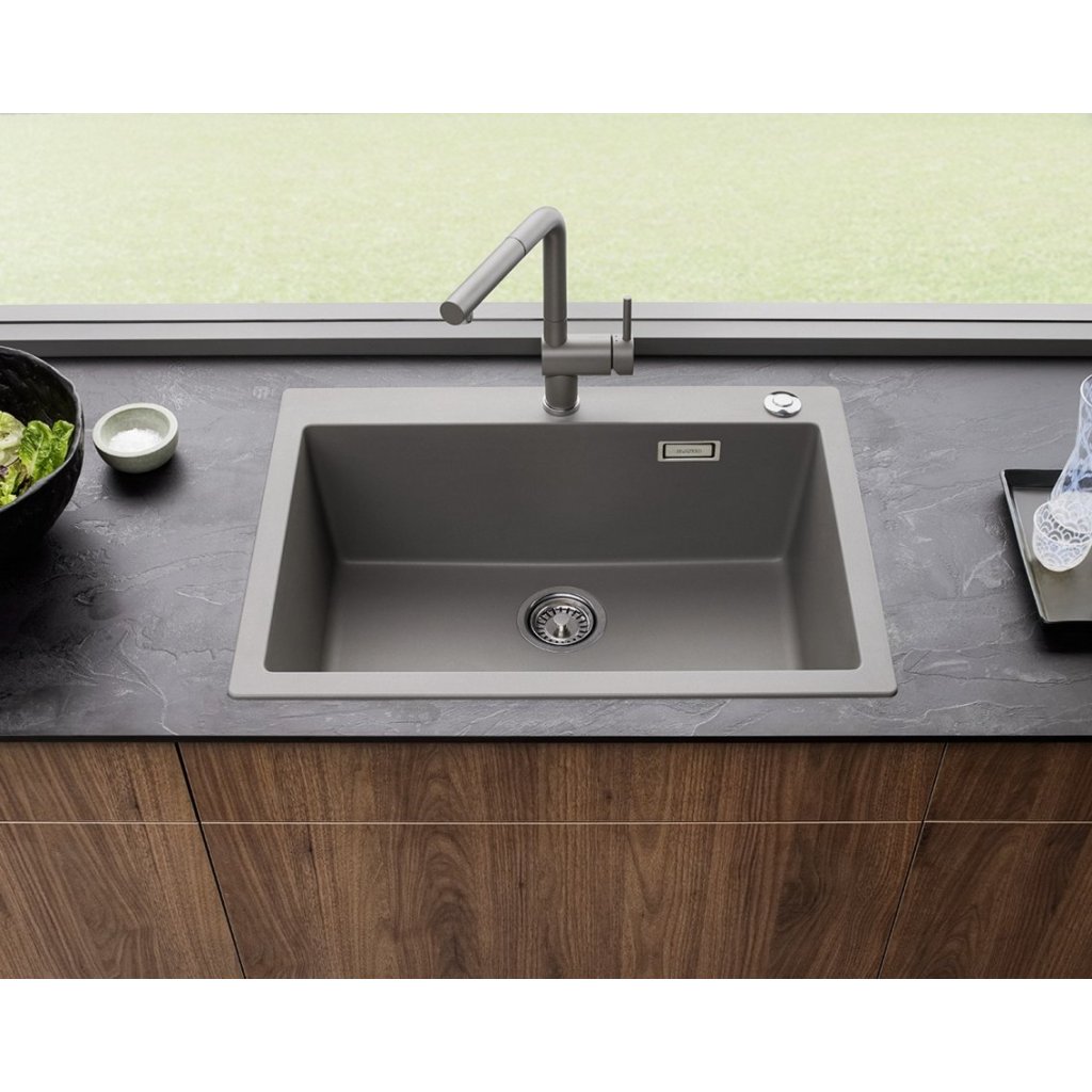 Kompozitní materiál, který je tvořen až z 80% ze žuly (granitu). Dřezy z tohoto materiálu zaujmou svým kamenným charakterem příjemným na dotek a nepřekonanými vlastnostmi. Jsou tvrdé, pevné a jemně pórovité. Materiál představuje dokonalou rovnováhu mezi jednoduchou péčí a odolností, hladkým povrchem a barvami, které lze ideálně kombinovat s prostředím kuchyně.
