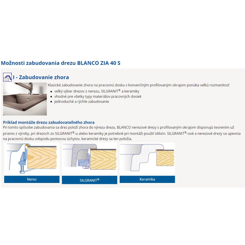 - Montáž: h orná, dřez je osazen na pracovní desku