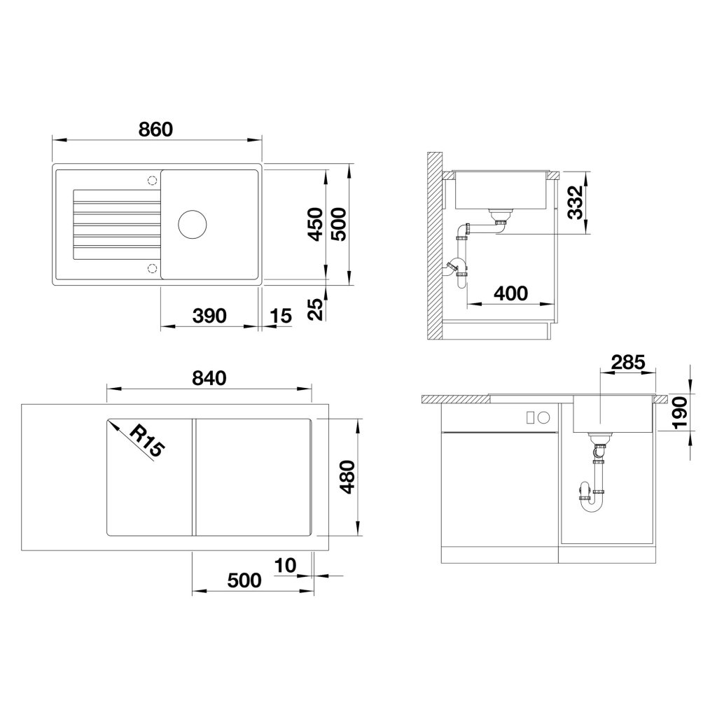 Blanco Zia 5 S, silgranitový dřez 860x500x190 mm, 1-komorový, černá, 526016