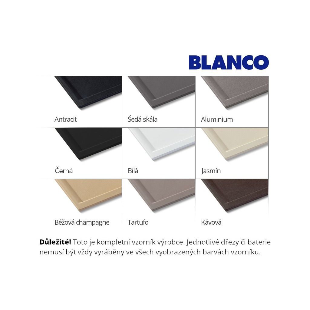 Dřezy BLANCO obsahují: 80% drceného kamene (křemen, žula), 15% akrylátového pojiva a 5% barviva a jsou v celém objemu homogenní. Povrch granitových dřezů je kamenitý, hedvábný a jemně pórovitý.