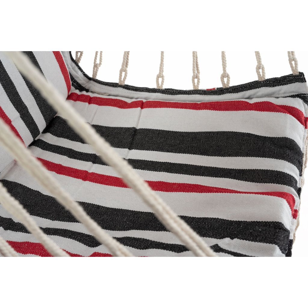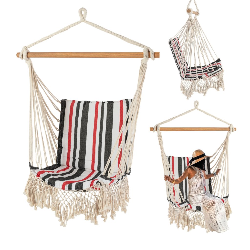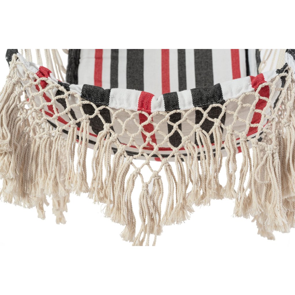 Brazilská houpací židle je dokonalým řešením, když je čas na odpočinek. Vyrobeno z odolné bavlny zajišťující prodyšnost. Židle byla navržena tak, aby svým vzhledem neustále vzbuzovala obdiv a především zajišťovala vysoký komfort používání. Židle jsou vyrobeny z kombinace barev: červená, černá a bílá. Tato kombinace dává zajímavý výsledek. Rozzáří, rozveselí a dodá barvu každé místnosti.