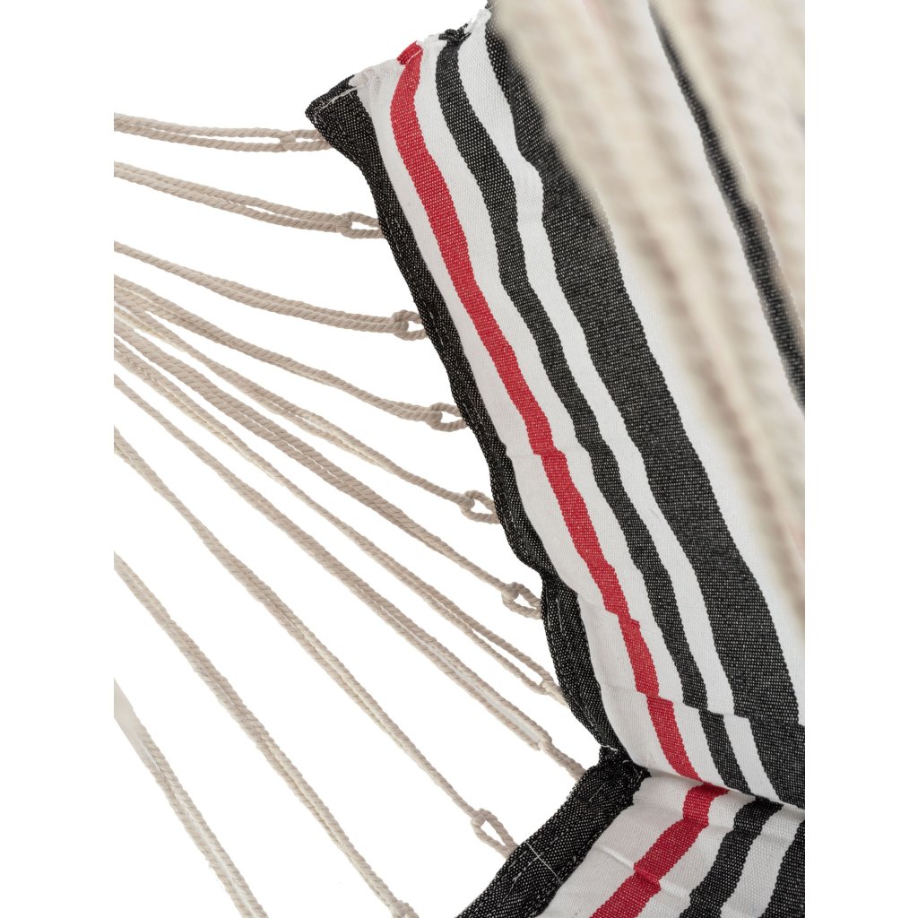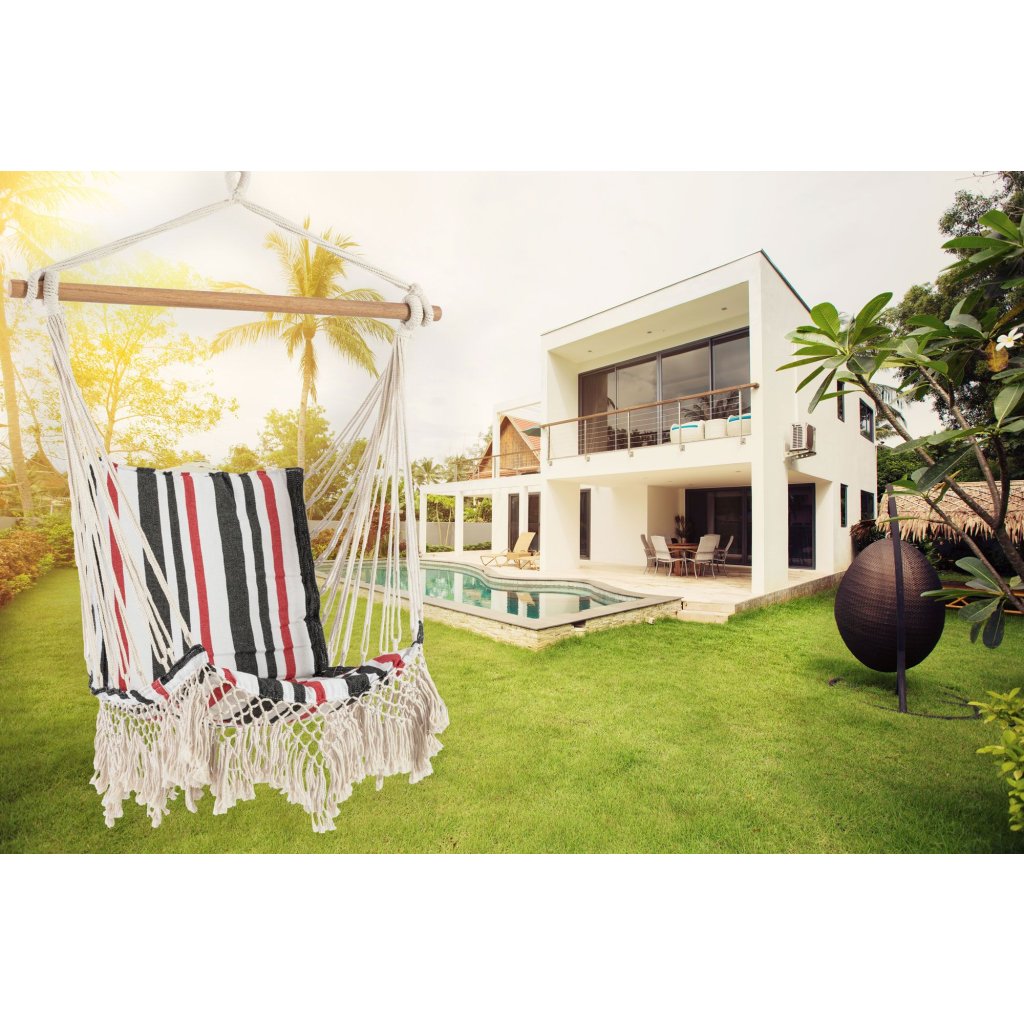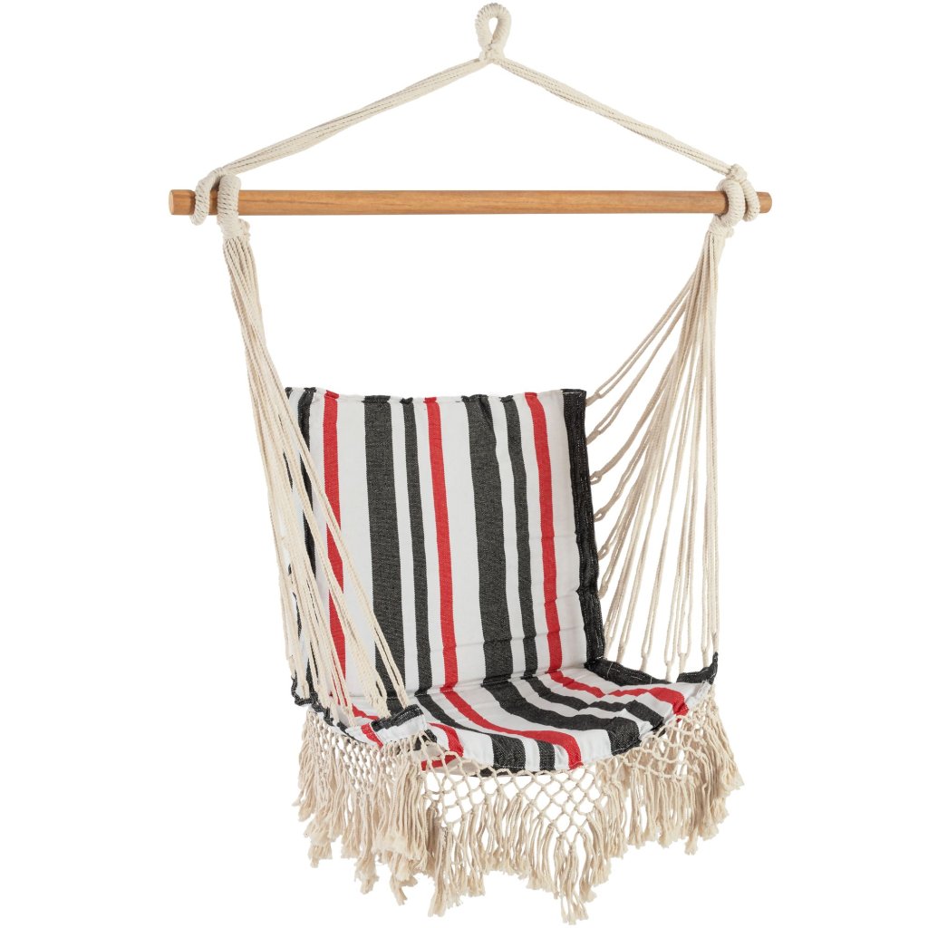 Brazilská houpací židle je dokonalým řešením, když je čas na odpočinek. Vyrobeno z odolné bavlny zajišťující prodyšnost. Židle byla navržena tak, aby svým vzhledem neustále vzbuzovala obdiv a především zajišťovala vysoký komfort používání. Židle jsou vyrobeny z kombinace barev: červená, černá a bílá. Tato kombinace dává zajímavý výsledek. Rozzáří, rozveselí a dodá barvu každé místnosti.