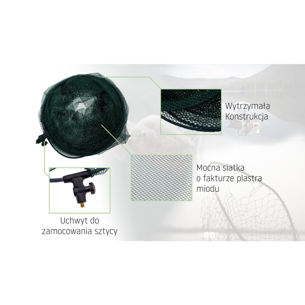 Rybářská síť je vyrobena z rychleschnoucího a odolného materiálu. Má 5 ráfků vyrobených z pružného plastu. Nastavitelná rukojeť s prostorem pro uchycení sedlovky.
