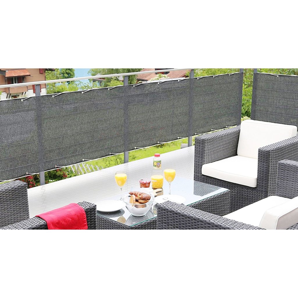 Je vyroben z vysoce kvalitního PVC. Tento materiál je neuvěřitelně odolný. Je ideální pro venkovní použití, jelikož je odolný vůči povětrnostním podmínkám. Kromě toho je lehký, takže rohož lze připevnit k plotu, balustrádě a síti. V případě potřeby je součástí balení šňůrka pro montáž rohože. Doporučuje se upevnit rohož každých 50 cm.