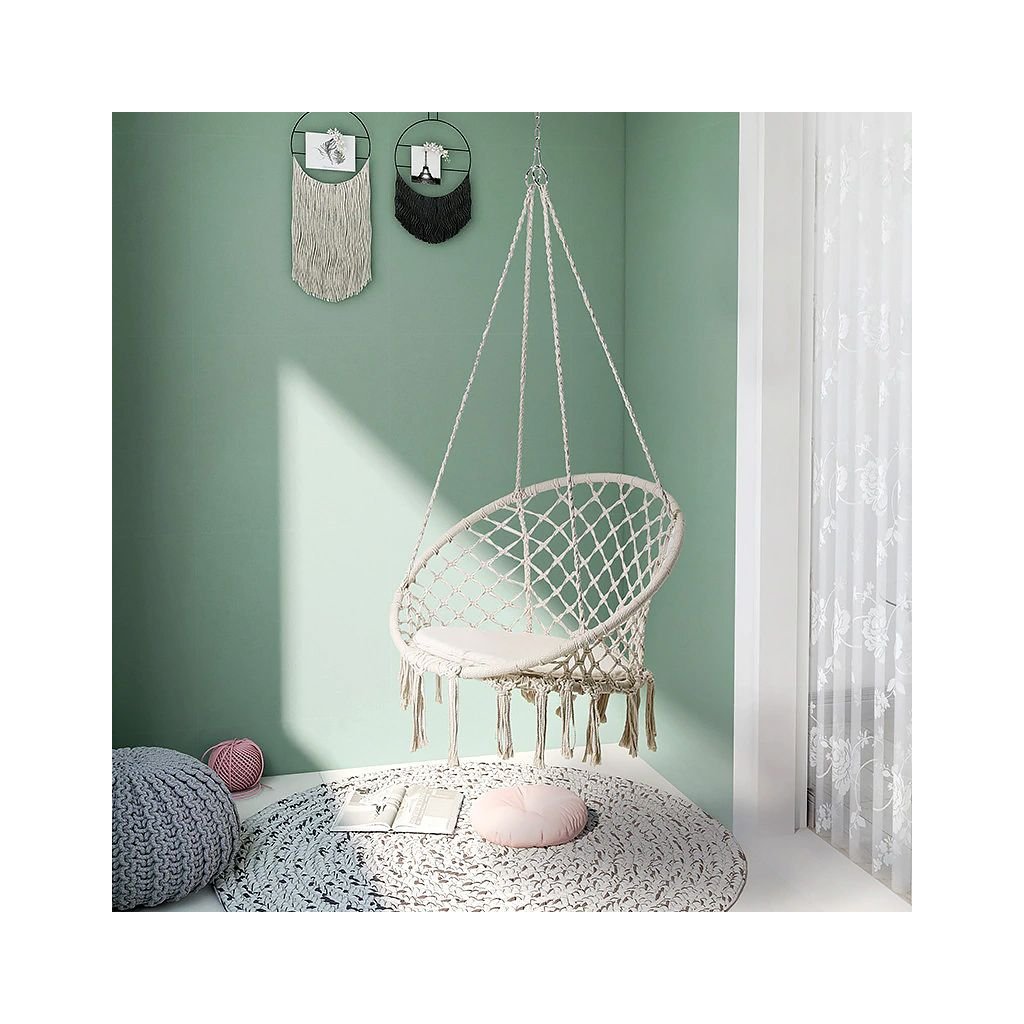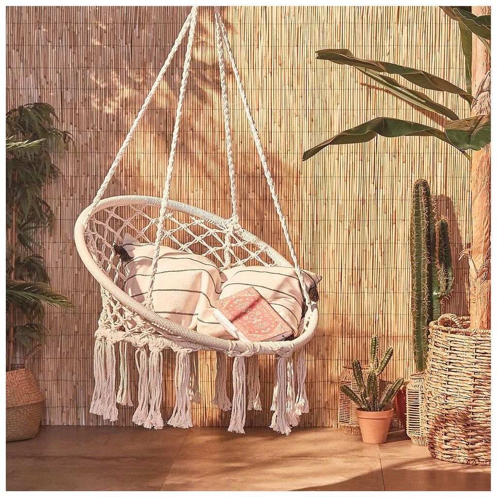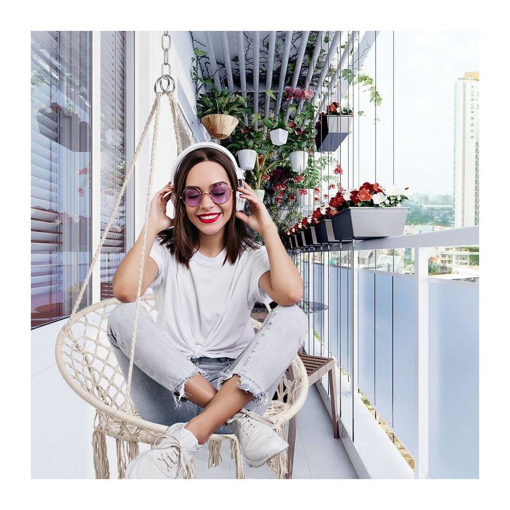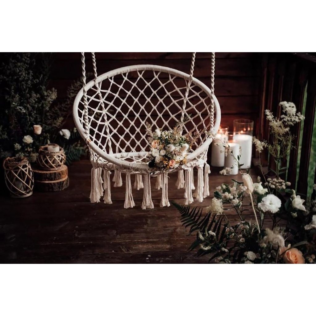 Velice pohodlný kus nábytku, který vám zpříjemní relaxaci na zahradě, na terase nebo doma. Houpačka byla navržena tak, aby bylo sezení co nejpříjemnější – vysoké opěradlo usnadňuje sezení nebo ležení a odpočinek. Vysoce kvalitní zavěšená houpačka ve stylu boho je vyrobena ze 2 kovových obručí a šňůrky odolné vůči vazbě. Opěradlo bylo vybaveno 4 samostatnými lany, které umožňují zavěšení na jeden nebo dva háčky.
