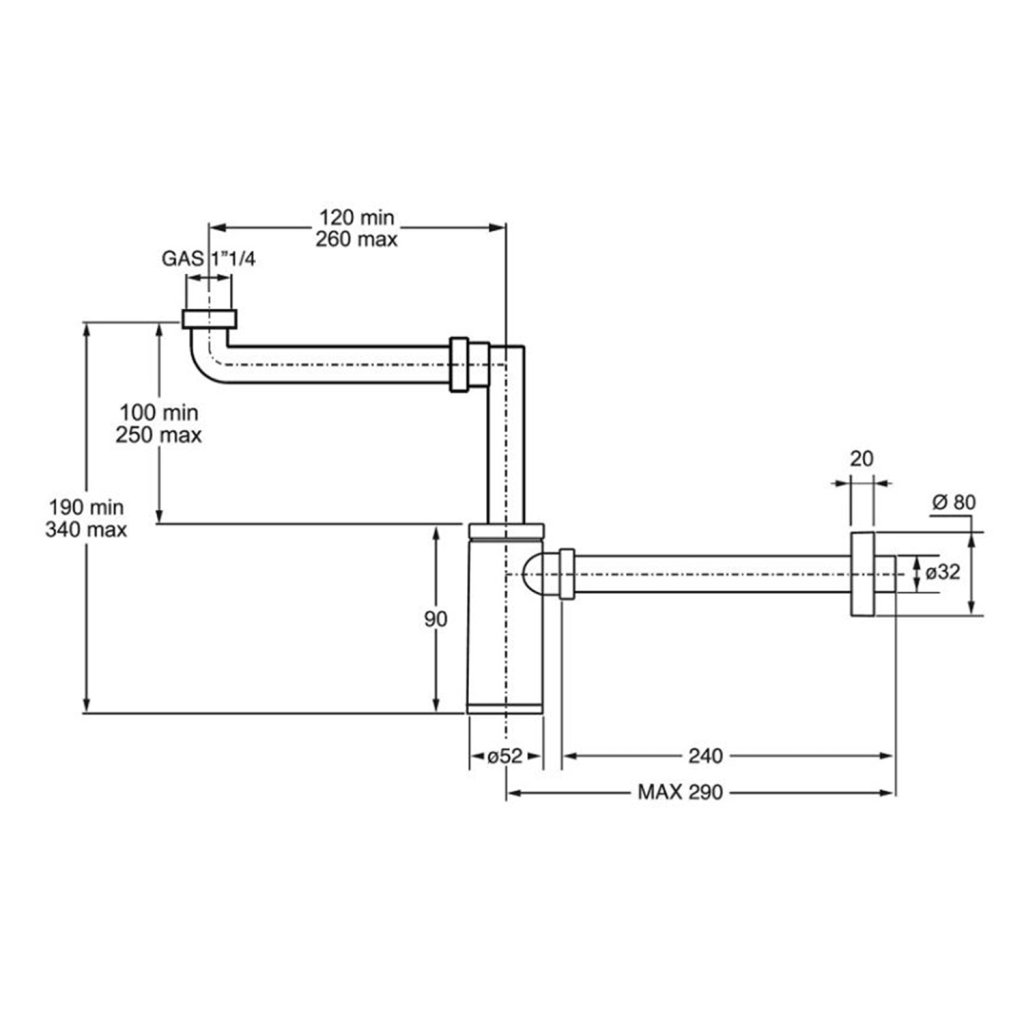 Bonomini, KING umyvadlový sifon šetřící místo, 5/4"-32, ABS/chrom, 0595SP25K7