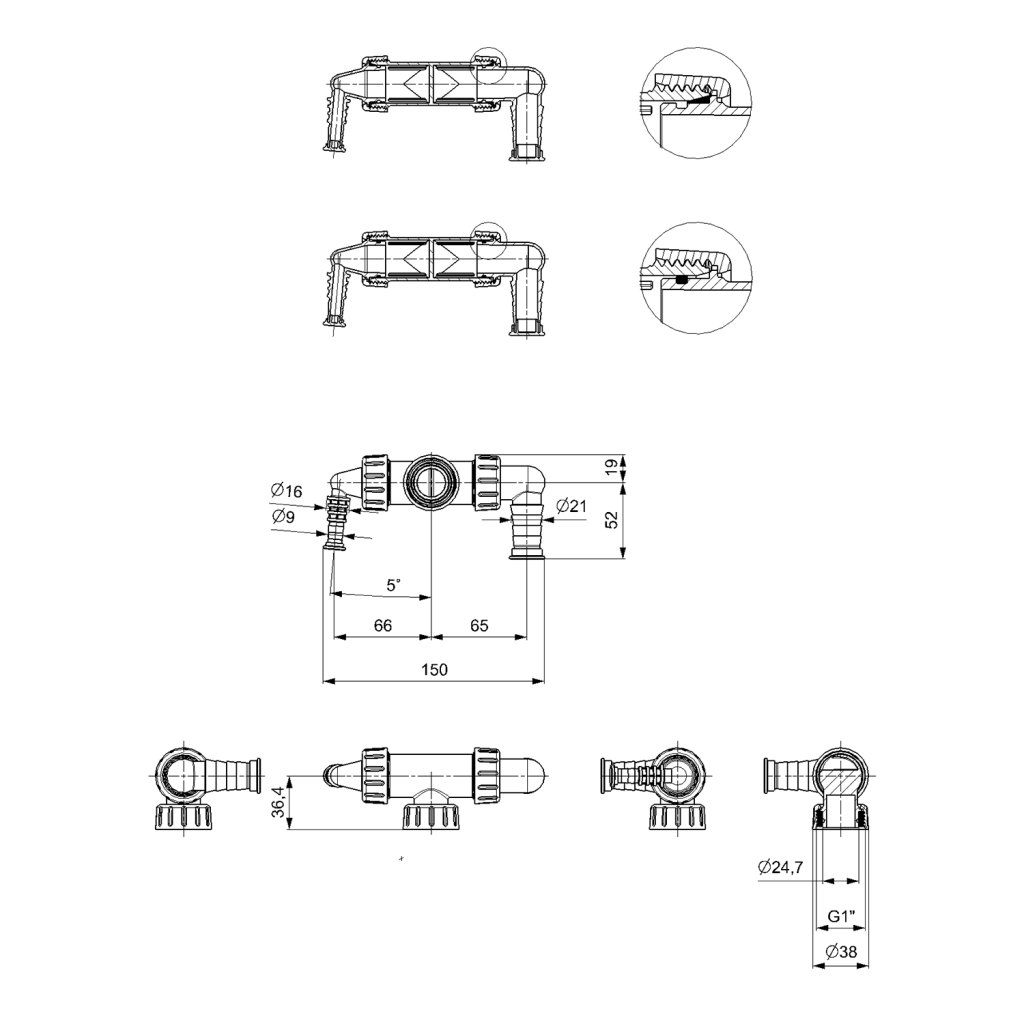 Bruckner, Dvoukoléčko pračkového podomítkového sifonu, bílá, 168.132.0