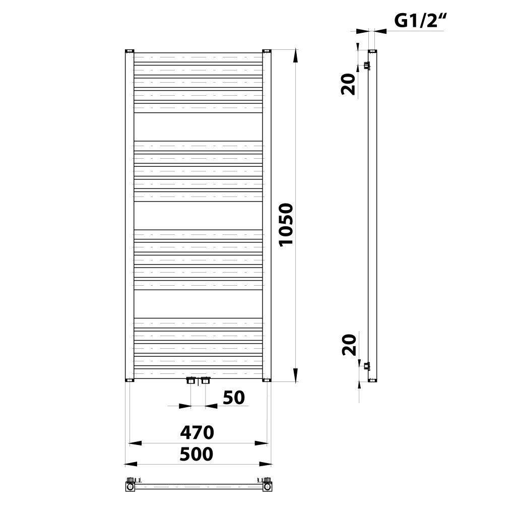 Bruckner, GRUNT topné těleso 500x1050 mm, středové připojení, černý mat, 600.121.6