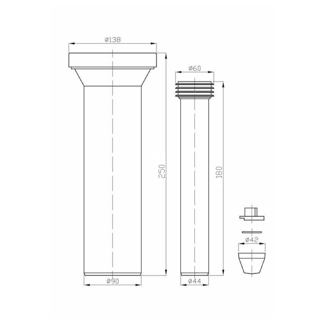 Bruckner, Set WC dopojení - přímé 250 mm, propojovací díl 180 mm, 159.322.0