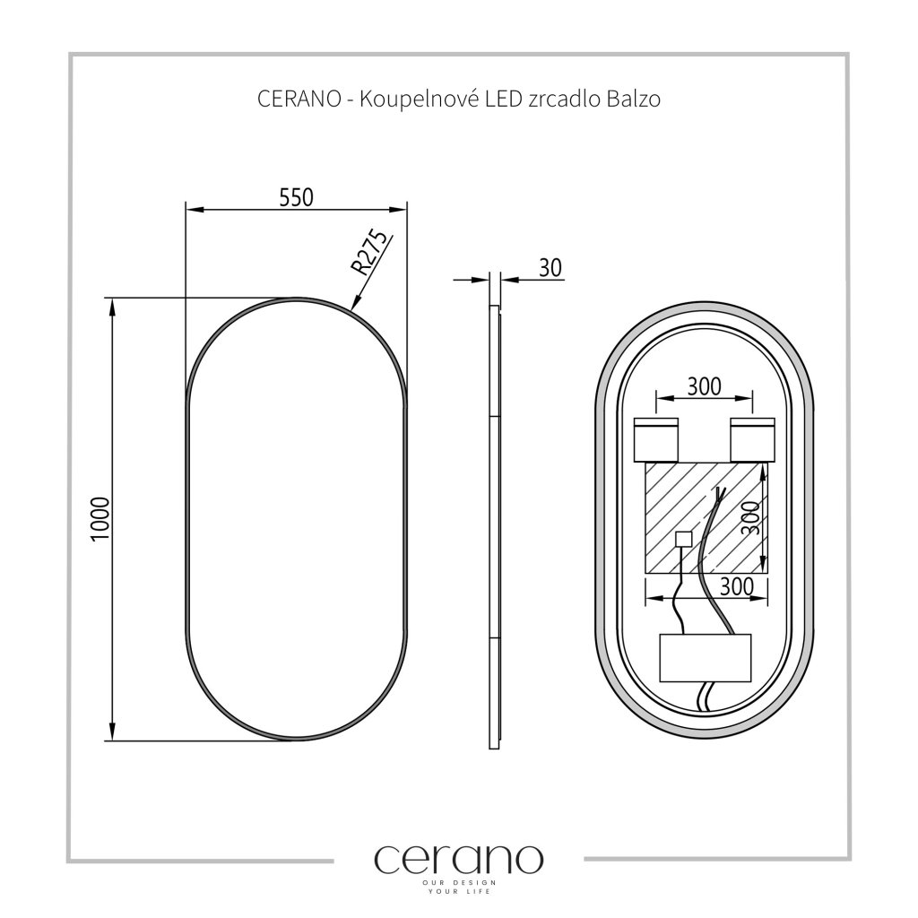 Cerano Balzo, LED koupelnové 55x100 cm, kovový rám, černá matná, CER-CER-NT8144H-55X100