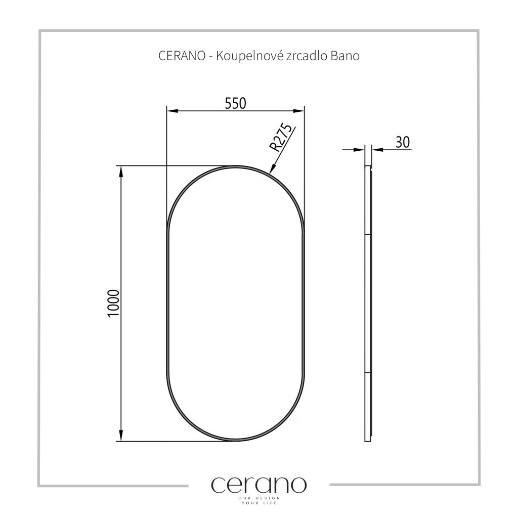 Cerano Bano, koupelnové zrcadlo 100x55 cm, kovový rám, černá matná, CER-CER-NT8144-100X55