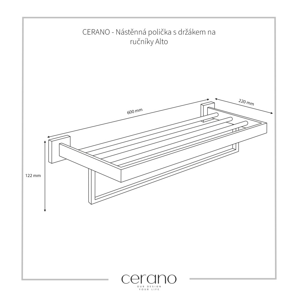 CERANO - Nástěnná polička s držákem na ručníky Alto - chrom, CER-CER-479329