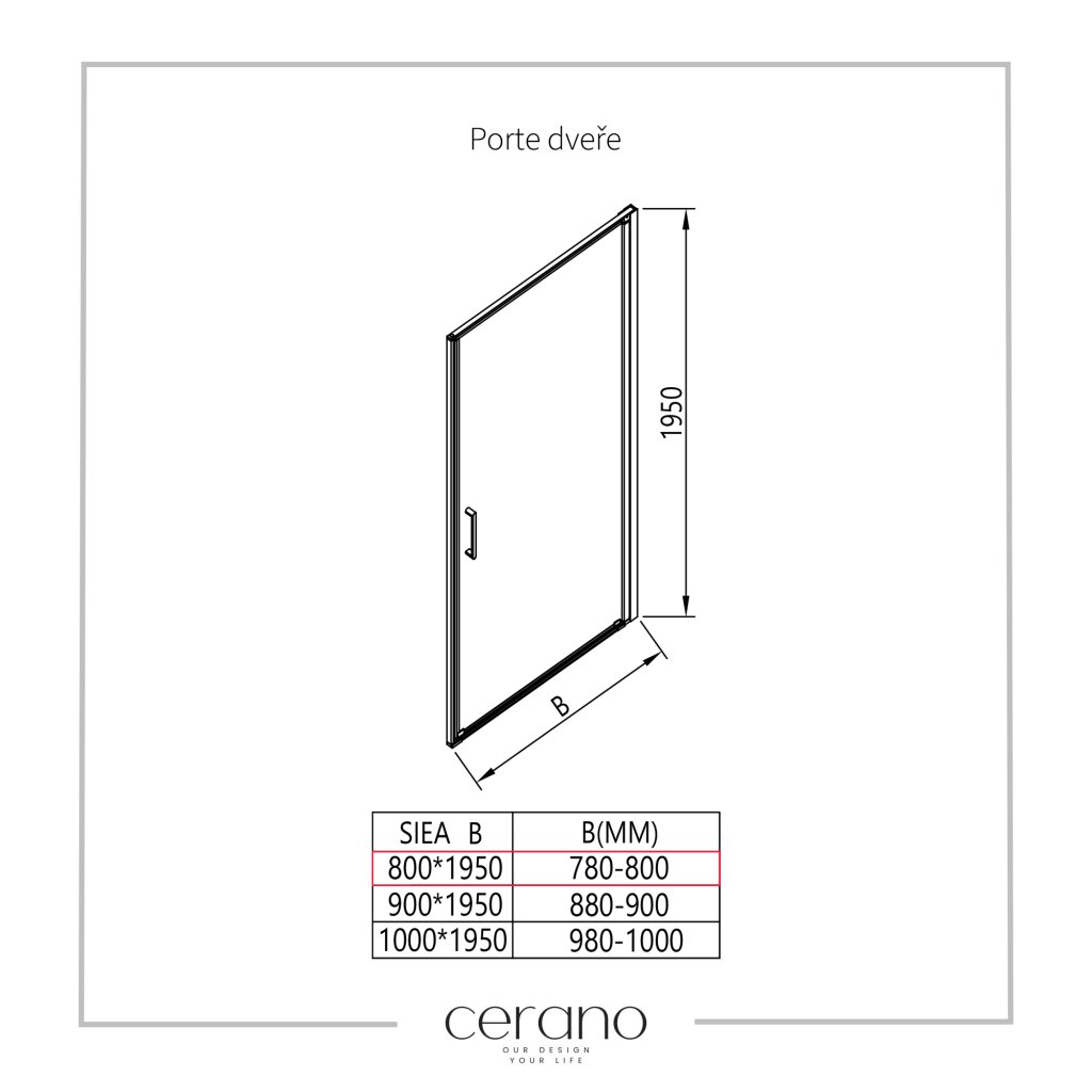 Cerano Porte, 1-křídlé sprchové dveře 80x195 cm, 8mm čiré sklo, černý profil, CER-CER-413486