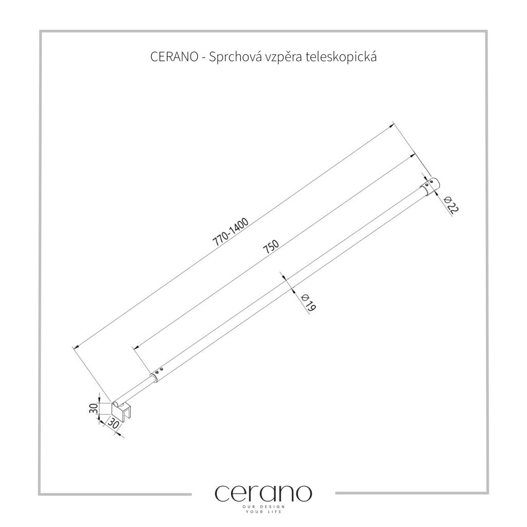 - Nastavitelná délka: U teleskopických vzpěr lze nastavit rozsah její délky dle individuálních potřeb vašeho sprchového koutu či Walk-in zástěn. Rozšířit ji lze ze 75 cm (750 mm) až na 140 cm (1400 mm).
