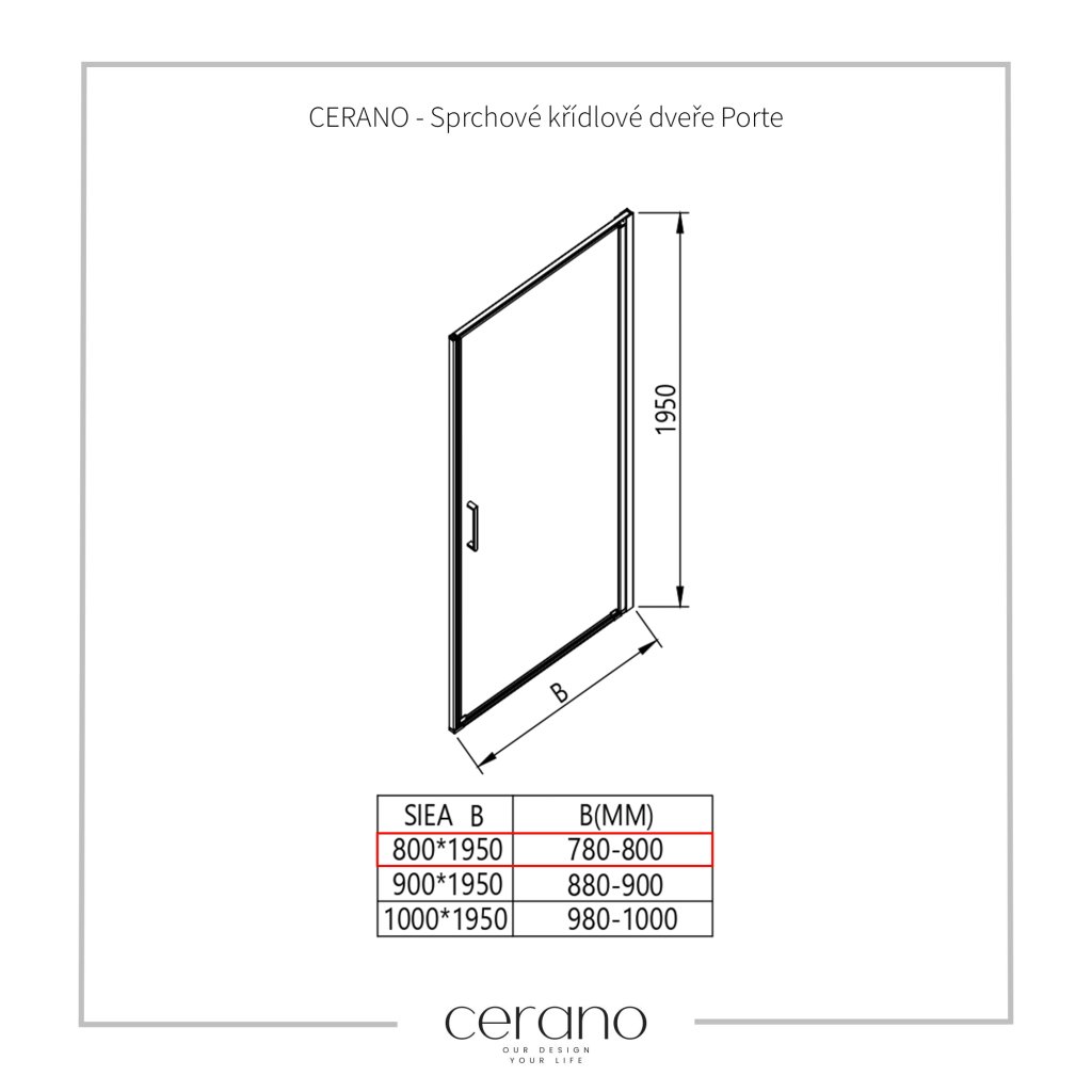 Sprchové křídlové dveře Porte značky Cerano jsou ideální volbou pro ty, kteří si cení stylového vybavení koupelny, ale zároveň se nechtějí vzdát praktických řešení.