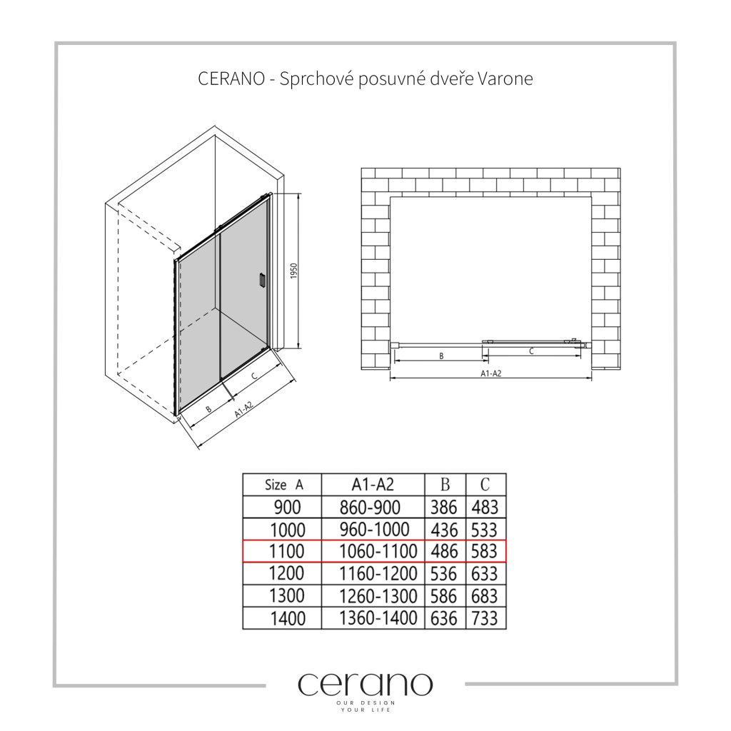 CERANO - Sprchové posuvné dveře Varone LINE L/P - chrom, transparentní sklo - 110x195 cm, CER-CER-478069